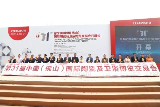 庆典仪式由中国建筑卫生陶瓷协会驻会专职副会长夏高生主持,来自中国建筑卫生陶瓷协会、中国陶瓷工业协会、中国建材流通协会、国家商务局流通业发展司、中国室内装饰协会、中国饭店协会、中国整装产业联盟等十多个国家级的协会、部门领导代表、近20个陶瓷卫浴产区的各级政府代表、企业代表,佛山市贸促会、佛山市进出口商会、佛山市投资促进中心、欧美工商会、古巴、西班牙、新加坡、印度尼西亚、马来西亚等10多家国际商协会领事馆商会代表以及新闻媒体等近千人共襄盛会。